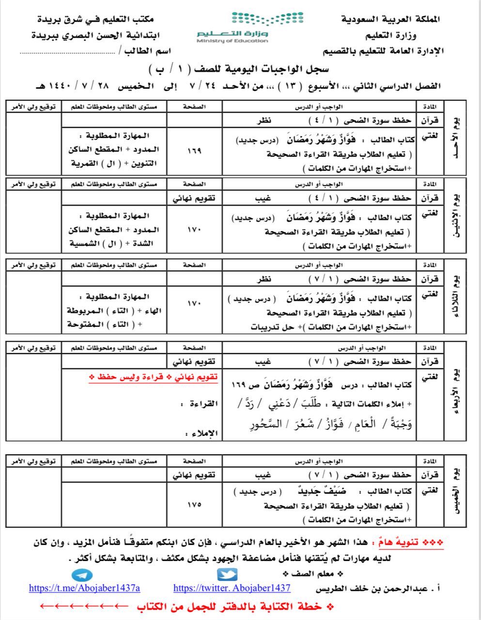 جدول الاختبارات النهائية المبين بعاليها ضمن خطة التقويم المدرسي 1437 1438 المعدلة بناء على المرسوم الملكي السامي حدد مواعيد الإجازات للطلاب والمعلمين ومنسوبي التعليم وستنتهي الاختبارات فعليا قبل حلول شهر. حقيقة تقديم الاختبارات النهائية 1439 مع التقويم الدراسي الجديد الذي قام العيس وي وزير التعل يم السعودي باعتم اده للعام الدراسي الم قبل 1437 1439 هجري ا لجميع المدارس الحكومية الخاصة الموجودة في المملكة العربية السعودية. أعلنت وزارة التعليم السعودية عن التقويم الدراسي 1438 كاملا موعد بداية العام الدراسي الجديد 1437 1438 في المملكة العربية السعودية بعد اجازة عيد الاضحي المبارك مباشرة يوم الأحد الموافق 17 12 1437 هـ 18 9 2016 م موضحة مواعيد. موعد الاختبارات النهائية الفصل الدراسي الاول 1442.